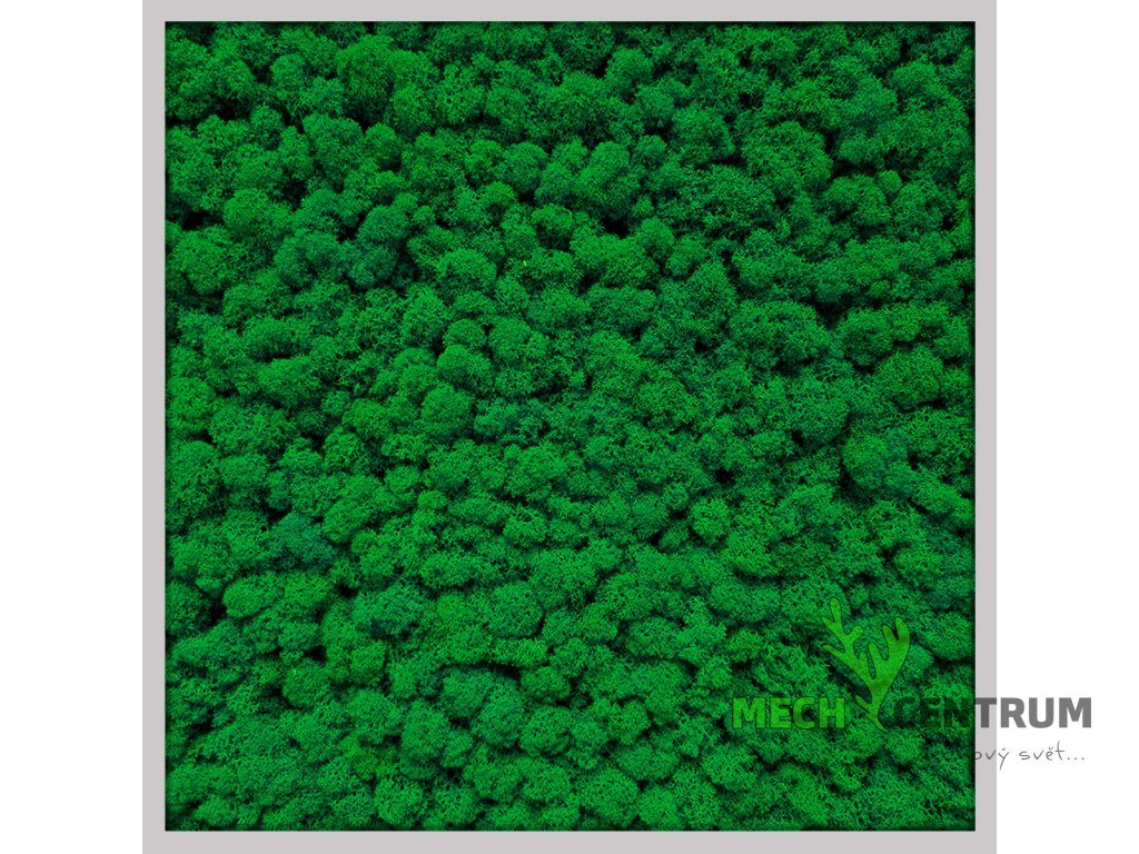 Tmavě zelené odstíny přírodních mechů jsou zde vyjádřeny s elegancí a vkusem. Šedý rám zvyšuje kontrast a vytváří sofistikovaný a moderní vzhled, který působí uklidňujícím dojmem.